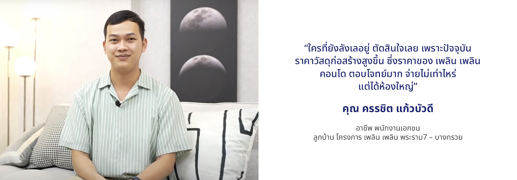 "ใครที่ยังลังเลอยู่ ตัดสินใจเลย เพราะปัจจุบันราคาวัสดุก่อสร้างสูงขึ้น ซึ่งราคาของเพลิน เพลิน คอนโด ตอบโจทย์มาก จ่ายไม่เท่าไหร่ แต่ได้ห้องใหญ่"