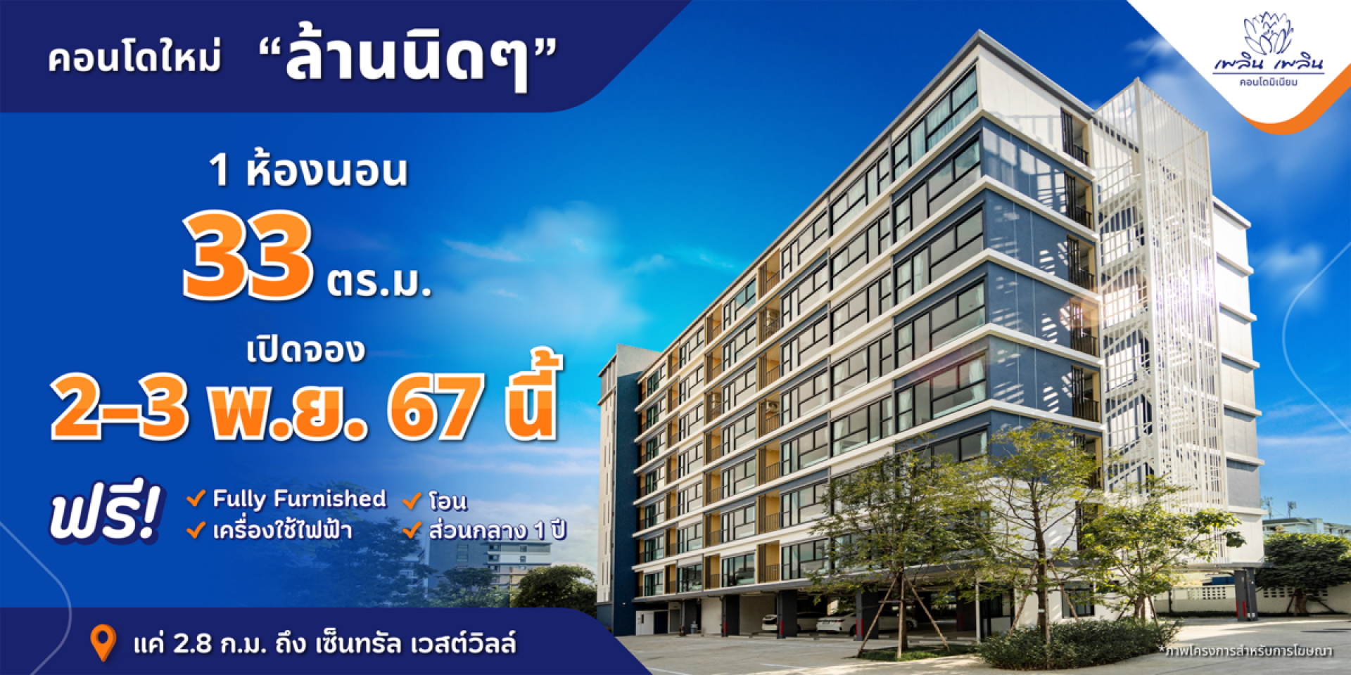 เพลิน เพลิน คอนโดมิเนียม แจ้งวัฒนะ - ปากเกร็ด 4 เปิดชมห้องตัวอย่างจริง 1 มิ.ย. นี้ เป็นต้นไป เปิดจอง 22-23 มิ.ย. พร้อมรับส่วนลดพิเศษ 50,000 บ.ชั้น 3-8 ทุกห้อง