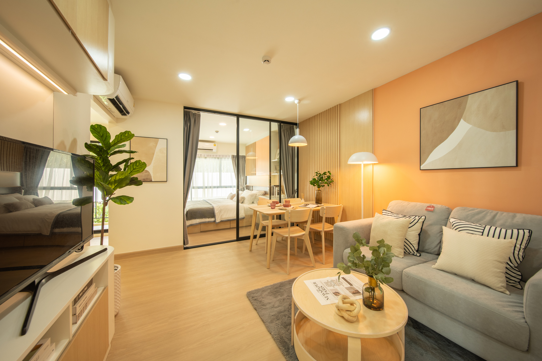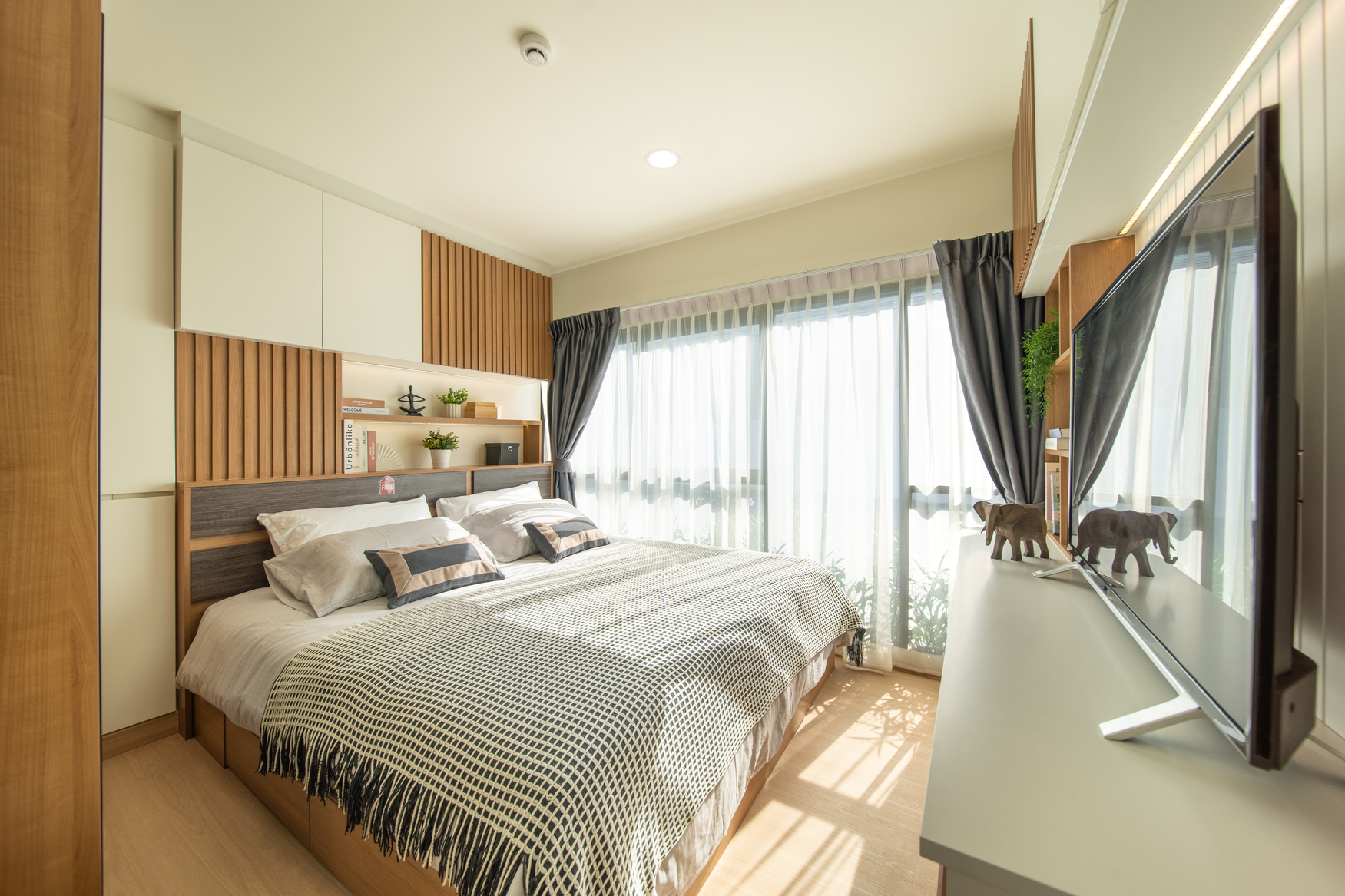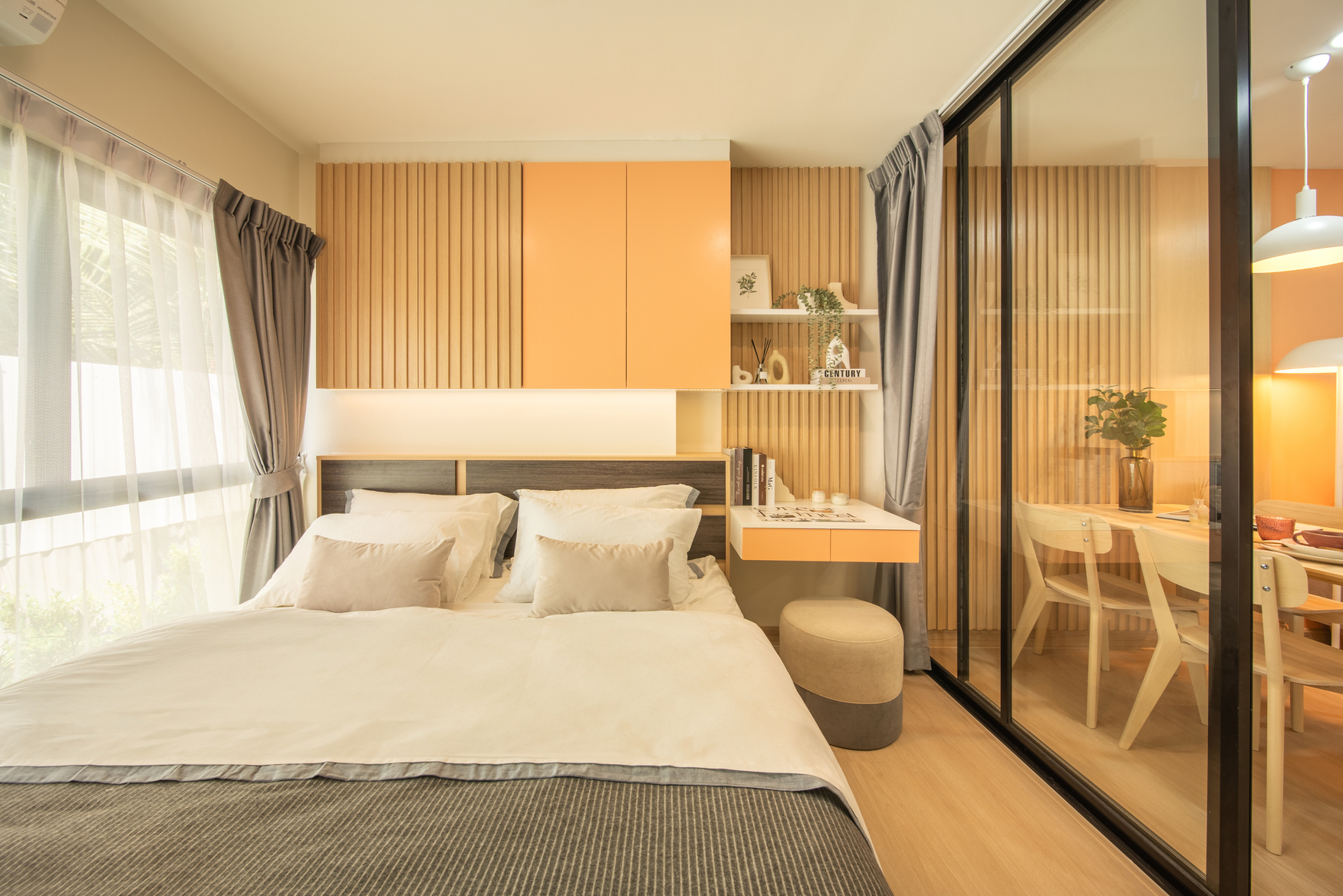 ตลอดเวลาที่ผ่านมาเราเน้นทำห้องขนาดใหญ่กว่าห้องมาตรฐานในท้องตลาด เพื่อให้อยู่ได้จริงไม่อึดอัด เพดานสูงโปร่ง หน้าต่างและประตูกระจกเต็มบาน รับแสงธรรมชาติ ช่วยให้ห้องดูโปร่ง โล่ง สบาย แบ่งพื้นที่เป็นสัดส่วน ออกแบบทันสมัยลงตัว จำนวนห้องพอดี ไม่มากเกินไปจนแออัด ให้ความเป็นส่วนตัว