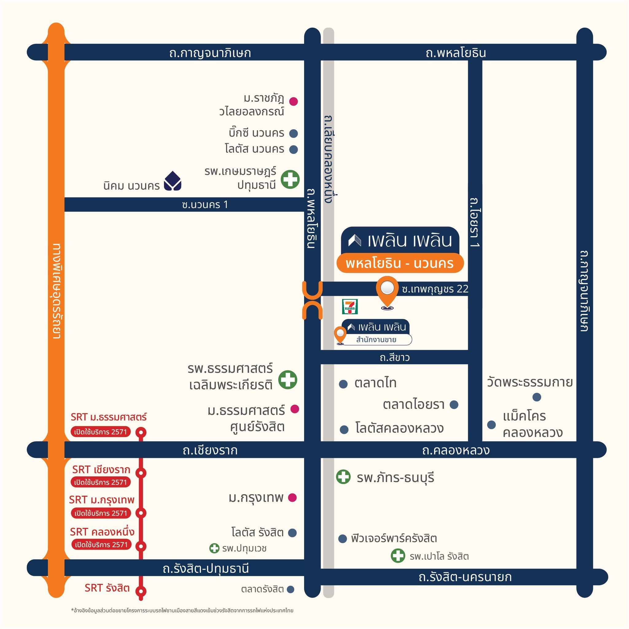 นิคม นวนคร / รถไฟฟ้า MRT สายสีแดง ม.ธรรมศาสตร์ เชียงราก /รพ.ธรรมศาสตร์ / ตลาดไท /โลตัสคลองหลวง / แมคโครคลองหลวง / บิ๊กซี นวนคร / เทสโก้ โลตัส นวนคร / รพ.เกษมราษฎร์ / ม.ราภัฎวไลยอลงกรณ์ / วัดธรรมกาย