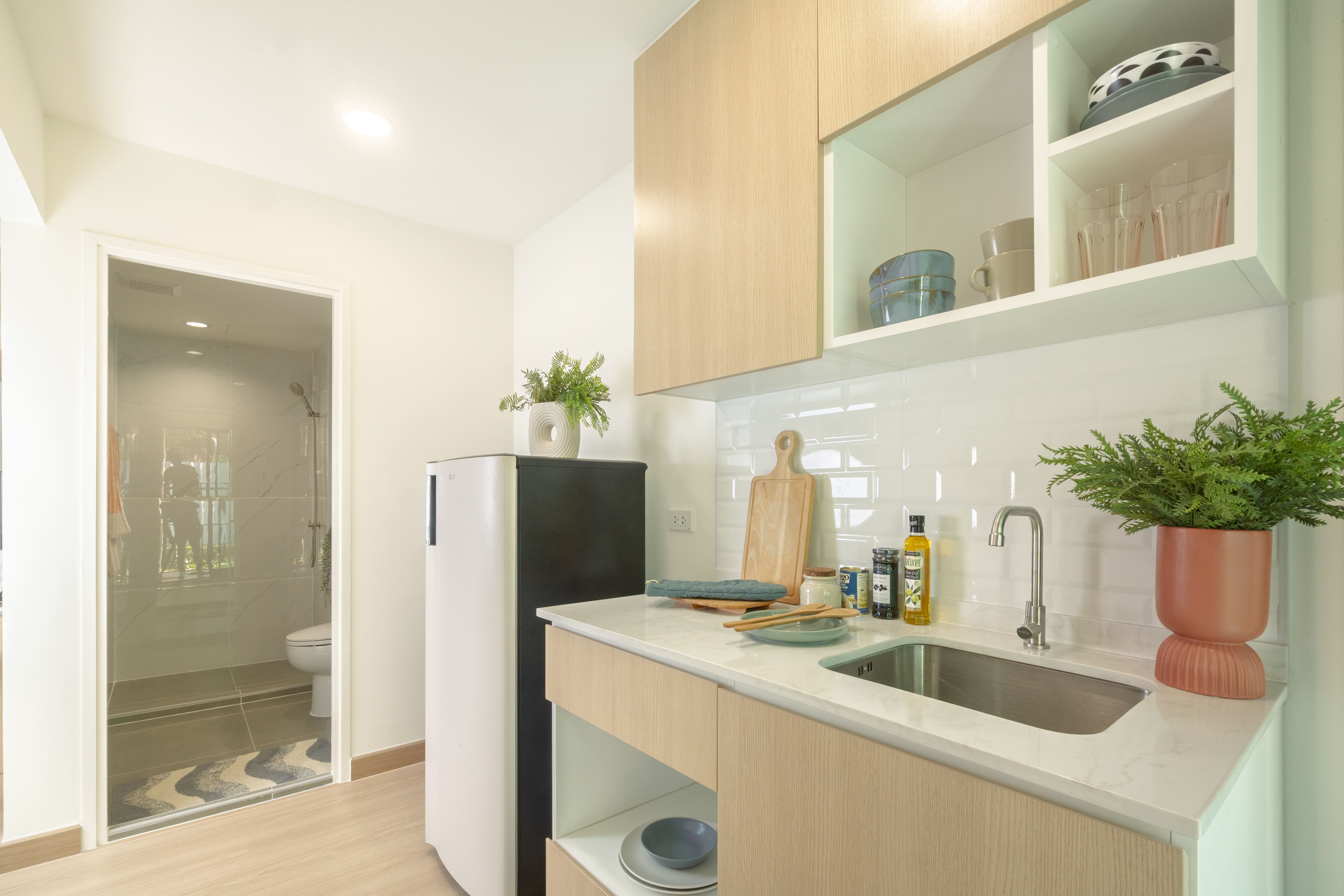เราให้ความสำคัญตั้งแต่ขั้นตอนการออกแบบ โดยพัฒนาห้องพักให้มีขนาดใหญ่กว่ามาตรฐาน เพื่อการอยู่อาศัยที่สบายและไม่อึดอัดในทุกวัน